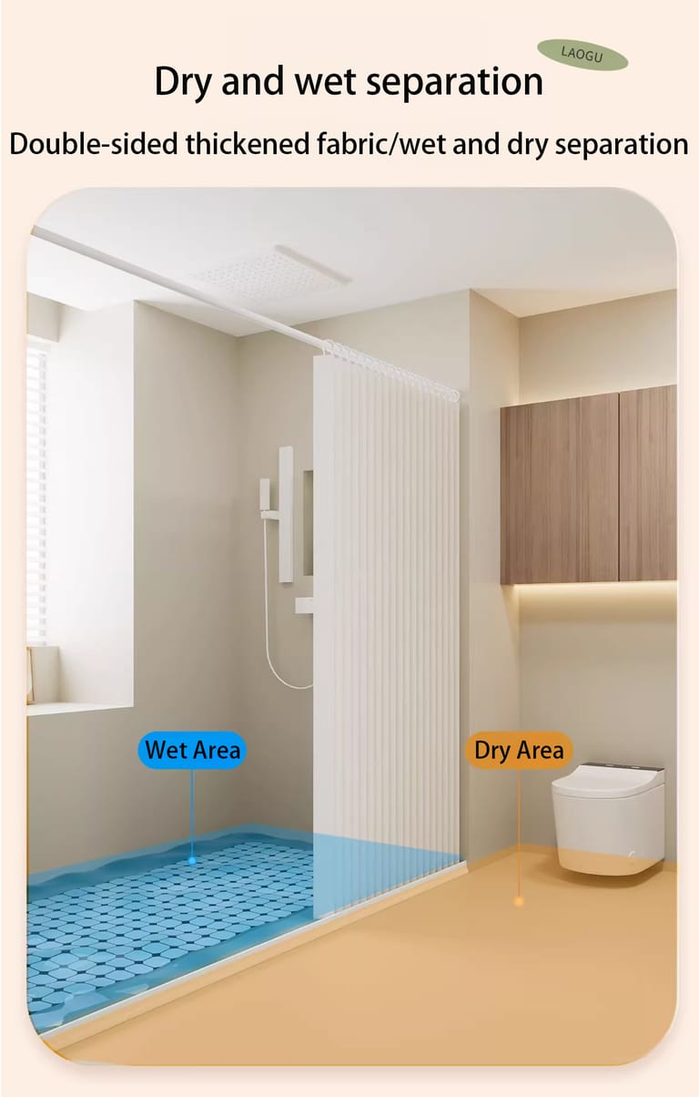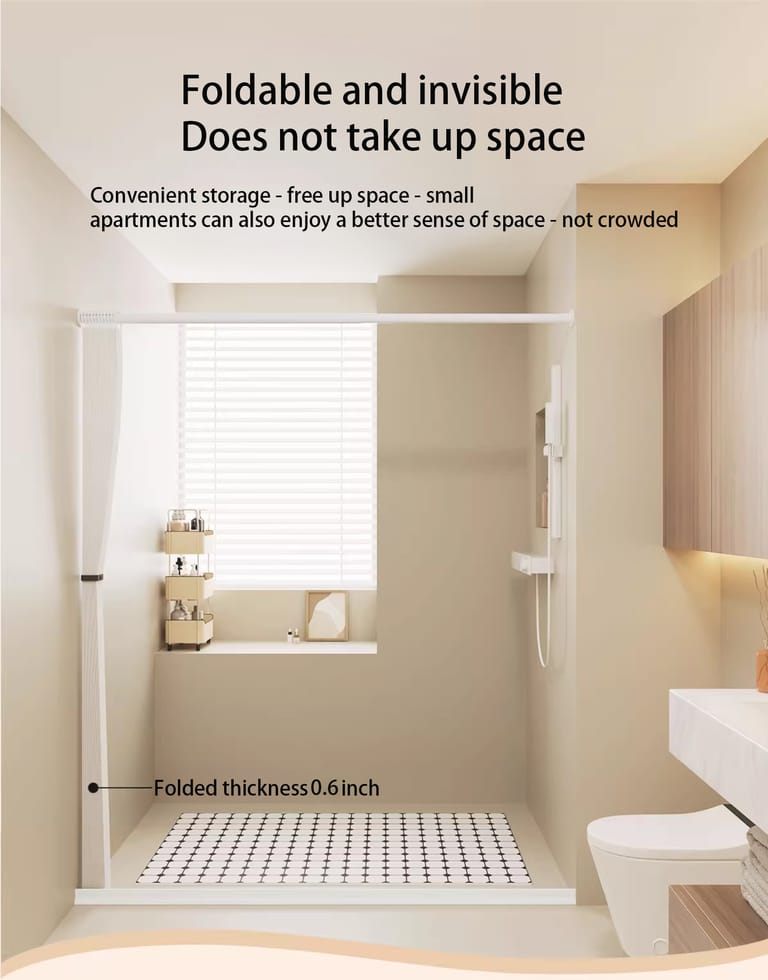 Upgrade your bathroom experience with our drill-free, double-sided magnetic folding shower curtain. This shower set combines superior safety and modern style, featuring a 25mm enlarged double-sided magnetic design for a secure and stable hold. The side-fitting design prevents splashing, providing more thorough waterproofing and separation. It boasts IPX7 lotus-leaf-style waterproofing, causing water to bead and roll off. When folded, it has a thickness of only 0.59 inches, offering a discreet and aesthetically pleasing look while saving space and allowing for excellent ventilation. Available in various sizes, it's perfectly suited for standard and compact shower stalls or bathtubs. This essential bathroom accessory seamlessly blends practicality and modern style, making your daily life more convenient and comfortable.