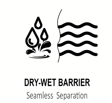 Precision Magnetic Engineering Unlike standard curtains, our suite features 25mm oversized double-sided magnetic strips. This widened contact surface ensures a powerful, airtight seal against your walls, effectively eliminating water leakage and ensuring a professional-grade dry-wet separation.