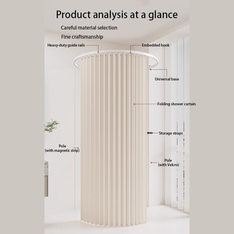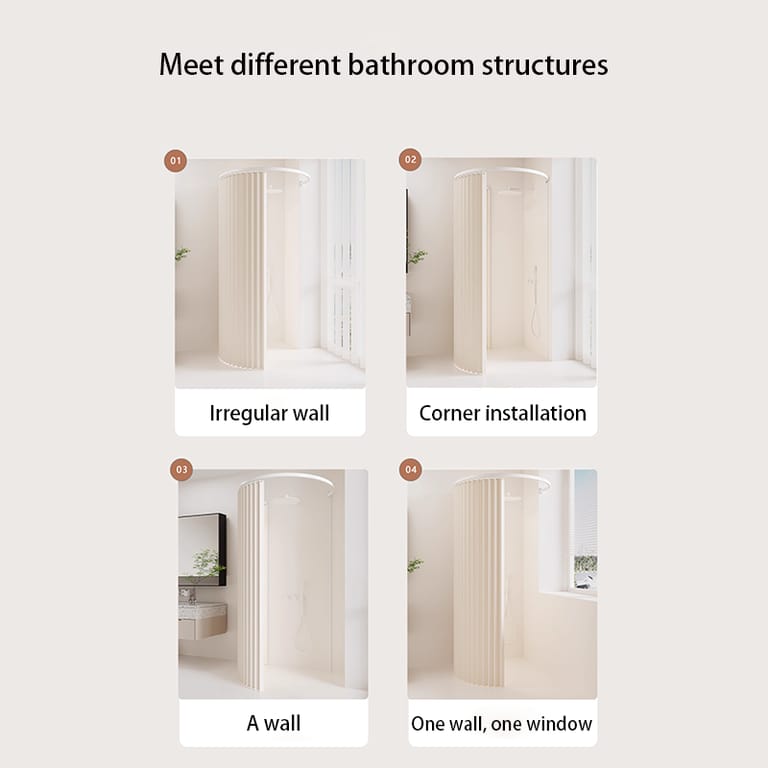 EN:Can this handle irregular walls, like one wall and one window? A: Absolutely. Our curved system is specifically engineered for architectural challenges. The flexible mounting points allow you to secure the curtain even when surfaces are not symmetrical, ensuring a watertight fit in corner or window-side installations.