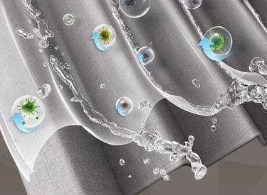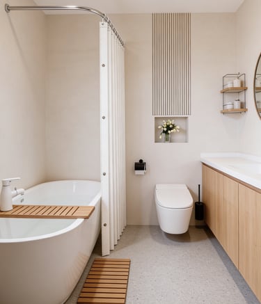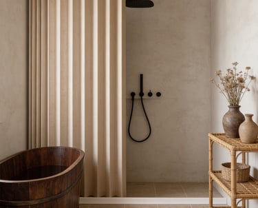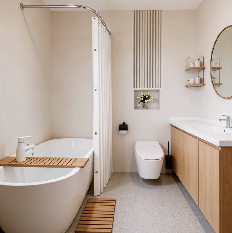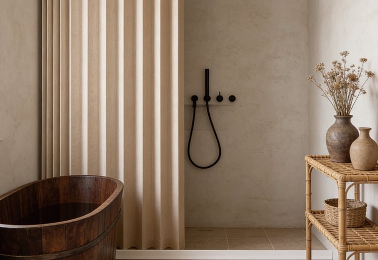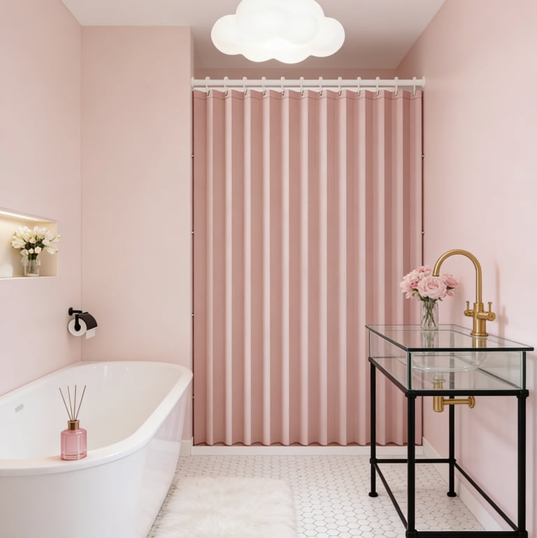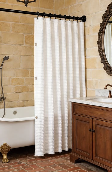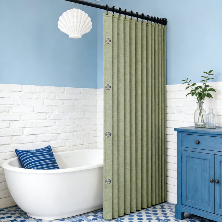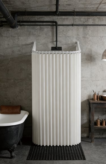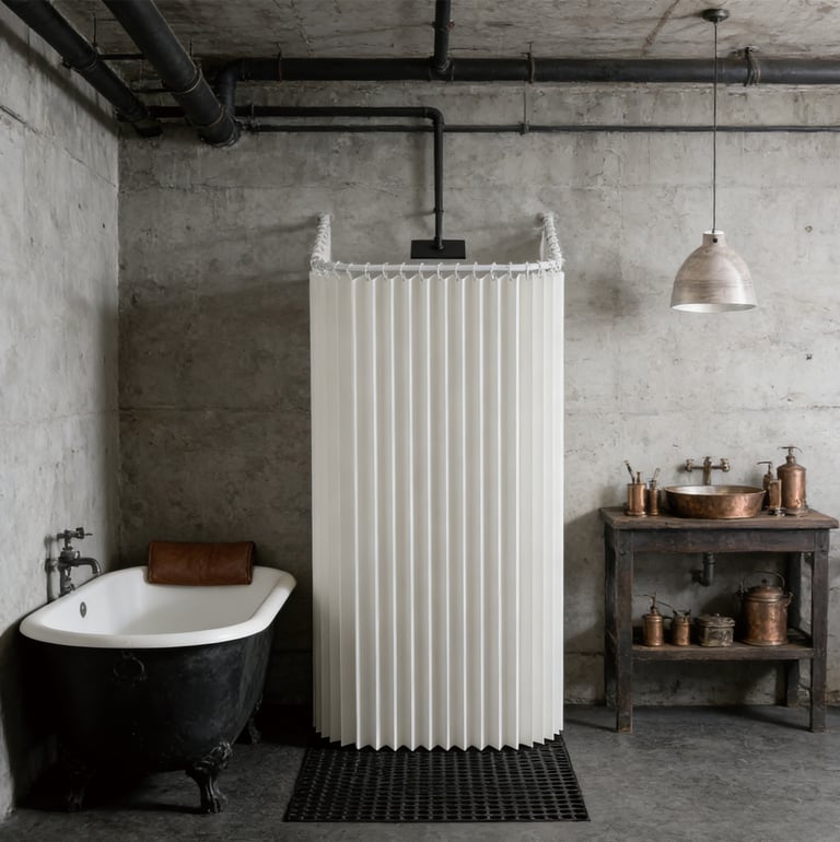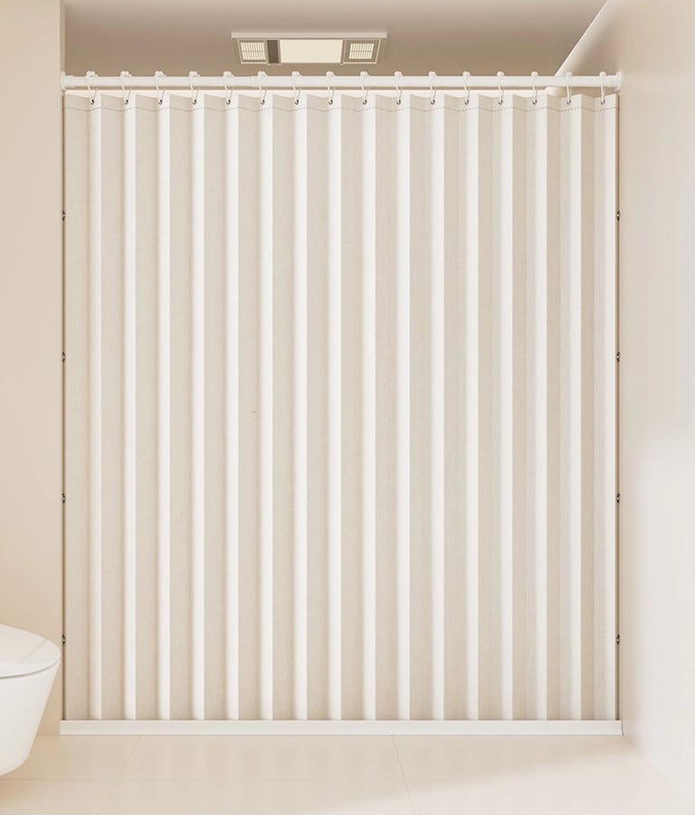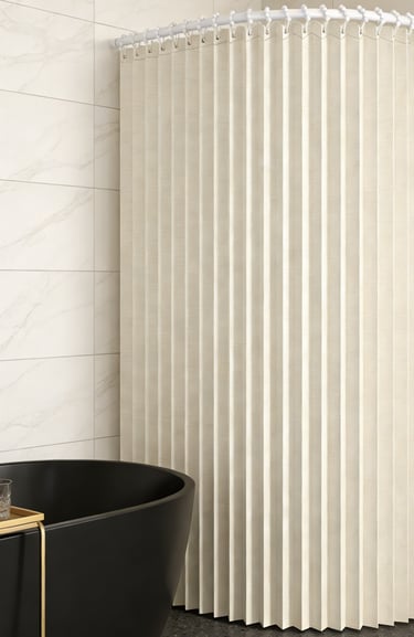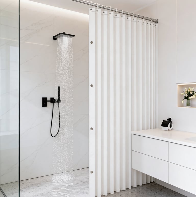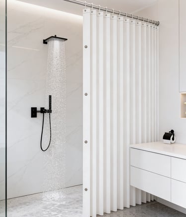 A minimalist shower curtain collection designed specifically for hotels, apartments, serviced apartments, and high-end vacation rentals.