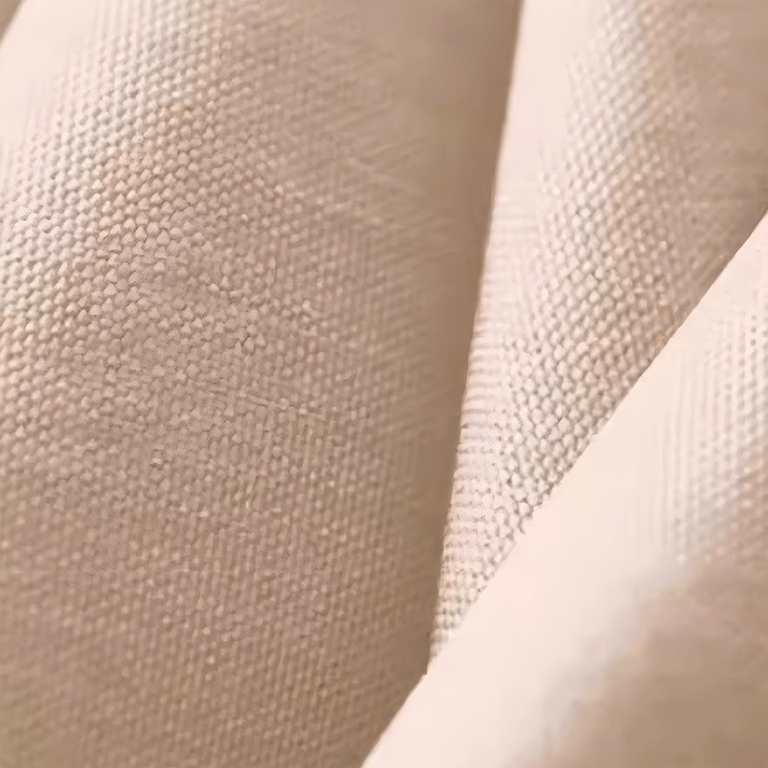 High thread count and density, high-temperature ironing for shaping, and thickened imitation linen coating.